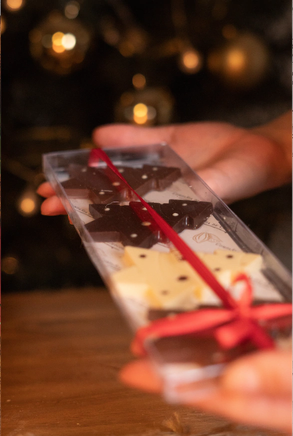 ¡Celebra estas fiestas con nuestros Pinitos de Navidad de Chocolate! Figuras, elaboradas con chocolate con leche y chocolate blanco, perfectas para compartir con familiares y amigos.